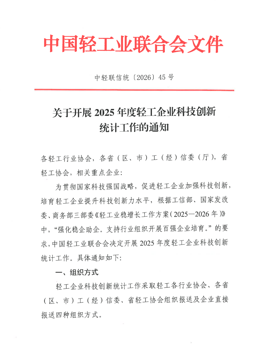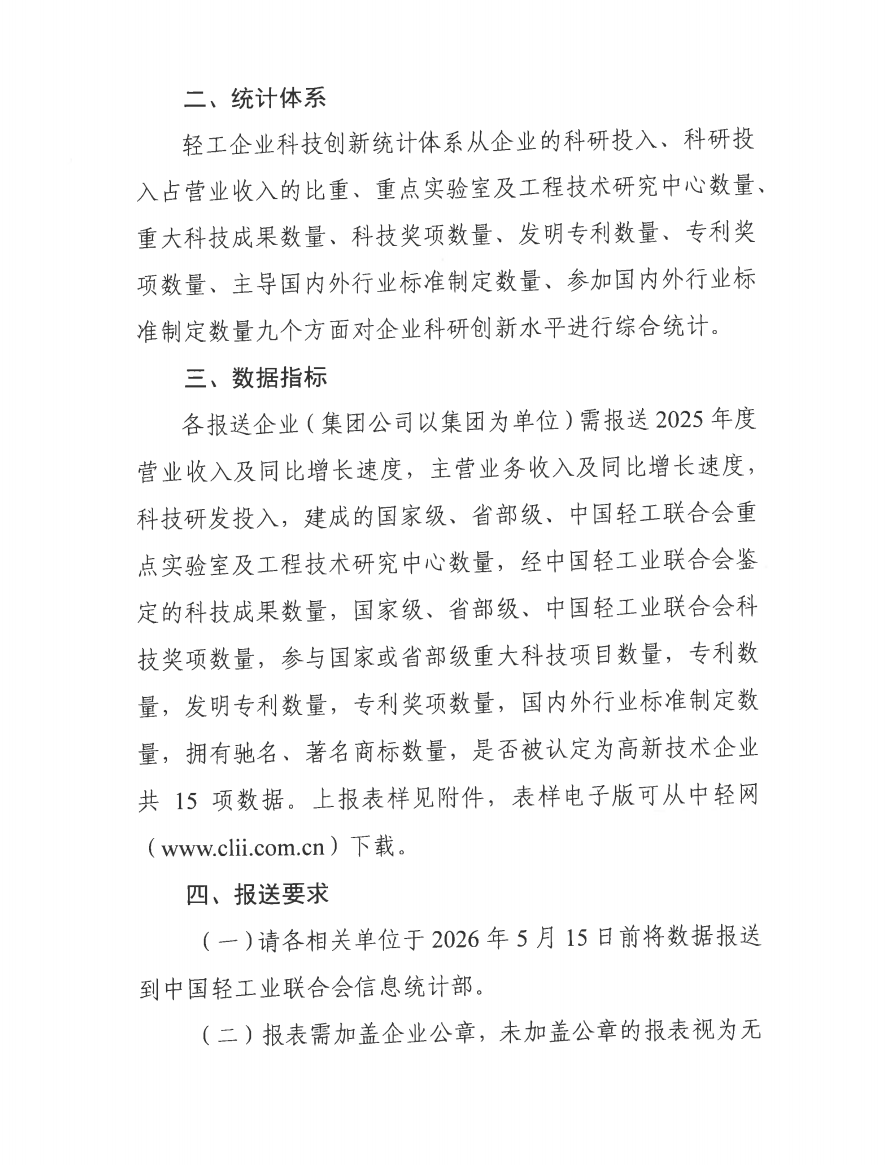 关于开展2025年度轻工企业科技创新统计工作的通知