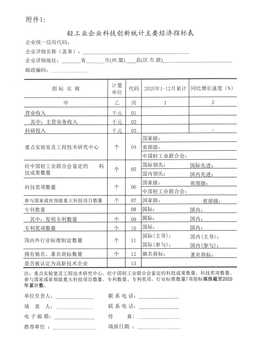 | 1、 | 2025轻工企业科技统计指标表 |