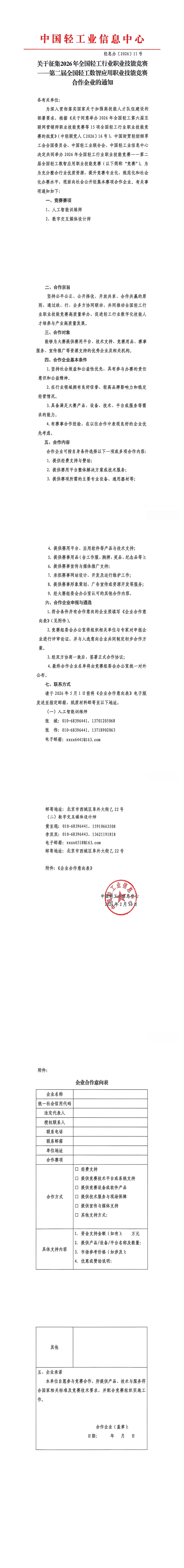 关于征集2026年全国轻工行业职业技能竞赛——第二届全国轻工数智应用职业技能竞赛合作企业的通知