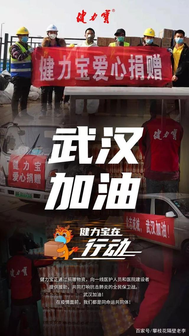健力宝正在行动,通过捐赠物资,向一线医护人员和医院建设者提供援助,共同打响抗击肺炎的全民保卫战。