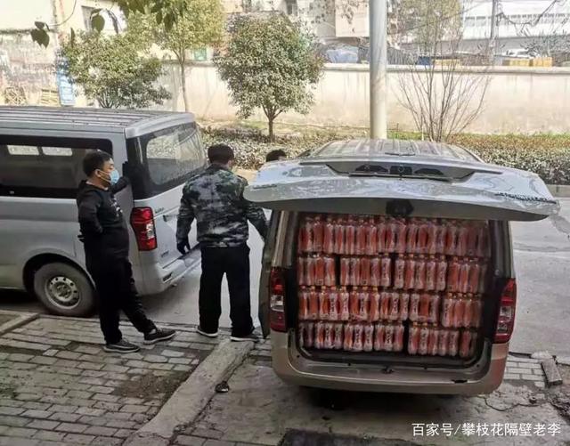 2月3日下午,几辆从健力宝经销商仓库出发的车辆紧急发送,终于在晚上8点,满载健力宝饮料的物流车抵达目的地,第一批捐赠——共计300箱健力宝饮料落实了,大家松了一口气。