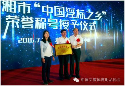 工信部消费品司轻工二处处长肖杜宇和中国轻工业联合会副会长、中国文教体育用品协会王世成理事长为“中国浮标之乡”临湘授牌,临湘市人民政府周琦副市长接牌。