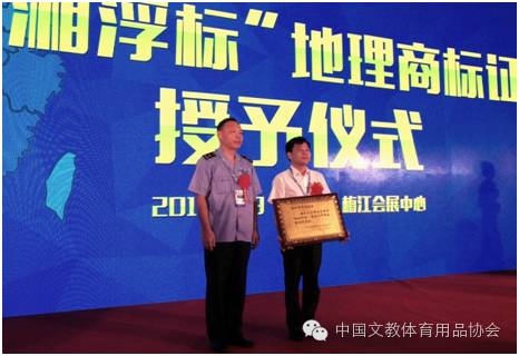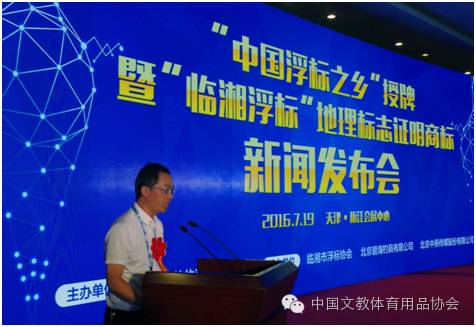 2016年7月19日,由中国文教体育用品协会主办的“‘中国浮标之乡’授牌仪式及钓具行业标准推广宣传会”在“碧海(中国)2016年夏季钓具产业博览会”开幕当天召开。