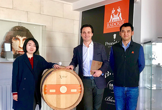 中国酒业协会文化委员会副秘书长、考察团团长王昕乐向哈杜橡木桶公司总裁Romain Liagre赠送协会纪念品
