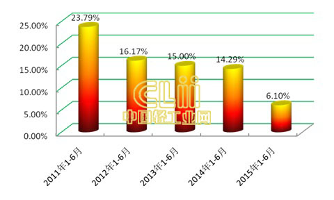 2015年上半年,全国照明行业累计完成主营业务收入1981.28亿元,同比增长6.10%。与去年同期相比,增速下降了8.11个百分点。从近五年同期增速情况看,月度增速总体呈下行走势。