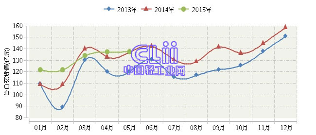 - 2015年1~5月全国家具行业出口交货值2015/12/1 13:43:53