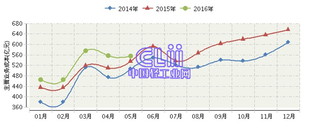 2016年1~5月全国家具行业主营业务成本累计同比增长8.80%