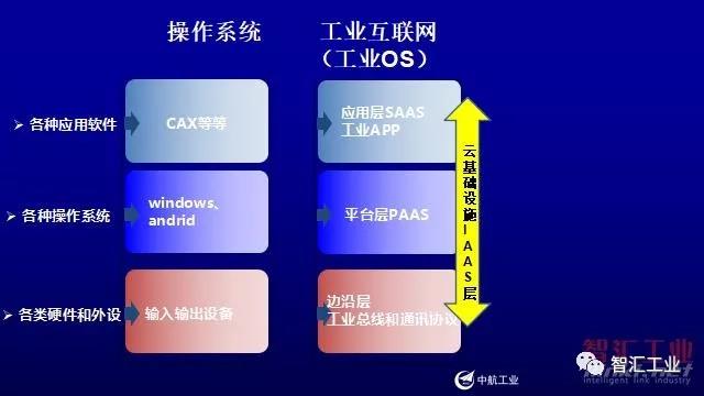 工业互联网边缘层对接工业设备和设施,中间平台层重点就是工业机理模型,应用层是工业SAAS。类比计算机的操作系统,可以参考下图。