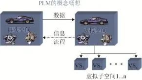 数字孪生(Digital Twin,简称DT)的概念可以追溯到格里夫斯(Grieves)博士2002年在美国密歇根大学产品生命周期管理(PLM)中心向工业界所演示的幻灯片如图1所示,当时标题为“PLM的概念畅想”[1]。其中已经包括了数字孪生的所有元素:真实空间、虚拟空间和从真实空间到虚拟空间数据流的连接,从虚拟空间流向真实空间和虚拟子空间信息连接。