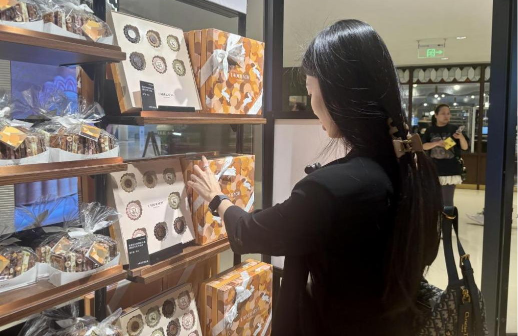 用巧克力做月饼、将中药材藏进酥皮……随着中秋佳节临近,各大超市与糕点品牌的月饼陈列区也热闹起来。记者调查发现,今年的月饼市场不只是口味的比拼,更承载起健康消费趋势的传递与品牌创意的集中表达。“参加谐音梗挑战就有机会获得中秋月饼限定礼盒。”走进北京一家连锁糕点店,显眼的活动海报首先吸引了记者的目光,仔细询问后得知,消费者只需用活动指定关键词创作谐音梗,搭配门店中秋限定产品图片在社交平台打卡,就能参与抽奖。刚完成打卡的王女士转身挑选了一盒六枚装的巧克力月饼:“我和朋友都爱吃巧克力,想试试这种特殊口味。”据店员介绍,此次店里推出的中秋限定礼盒是用巧克力做的月饼,有多种口味,偏甜口的居多。礼盒中的月饼数量也有讲究,以六枚、八枚、十二枚为主要包装,贴合了中国人对 “六六大顺”“八方来财” 的吉利期盼。记者看到,店内巧克力月饼的夹心口味格外丰富——酸奶草莓、焦糖扁桃仁、抹茶、柚子等一应俱全,饼皮上还印着兔子、桂花等图案。“‘桂’谐音‘贵’,既有中秋氛围,又藏着吉祥寓意。” 店员告诉记者,该品牌是瑞士专注巧克力领域的老品牌,此次推出巧克力月饼,是想把西方的甜食巧克力与东方的中秋团圆文化相结合,让不同地域的人都能从月饼里品尝到熟悉的乡愁,既可以满足年轻群体对新鲜感的追求,又契合大众的传统消费心理。
