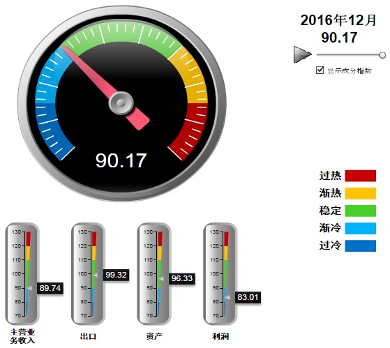 图1 2016年12月家具行业景气指数及分项指数显示状况