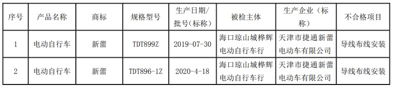 海南省市场监督管理局:2批次电动自行车产品不合格