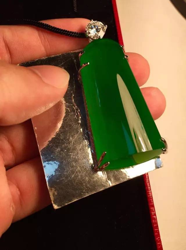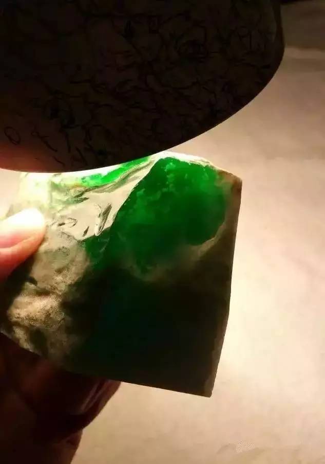 透光一看,绿到底,水头好而且种非常老(种老是密度高,晶体间隙小)。