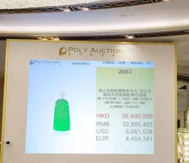 就这样这一块难得的素面玻璃种帝王绿大挂坠,在保利香港2016春季拍卖会上,创下了4649万港元的成交价,也创下了保利香港拍卖会市场最昂贵的翡翠素面拍卖记录!物以稀为贵,越是顶级的翡翠价格越是夸张。