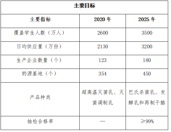其中,《规划》对覆盖学生人数、日供应量、生产企业数量、奶源基地、产品种类、抽检合格率都提出了具体的目标数据。
