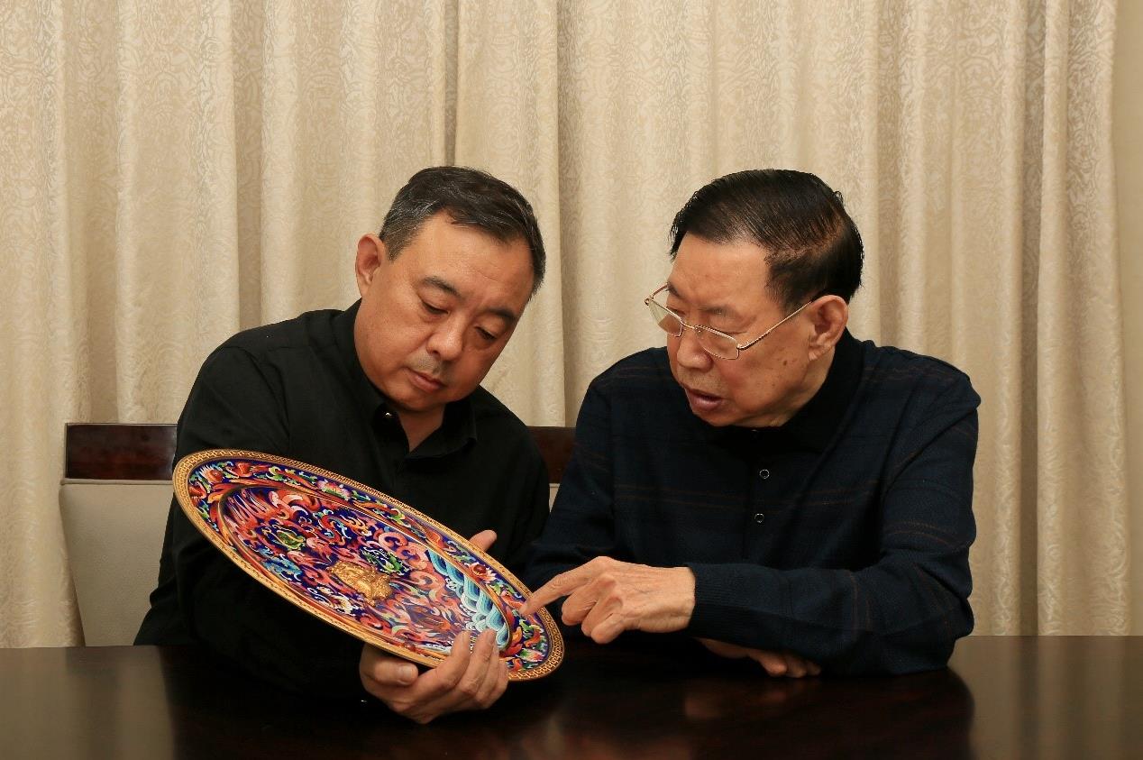 张同禄大师与张旭大师,共同探讨传统景泰蓝的创新发展。