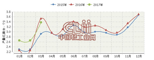 2017年一季度,全国灯具及照明装置行业累计完成产量8.82亿套,同比增长3.25%。其中: 3月份完成产量3.38亿套,同比增长9.25%。