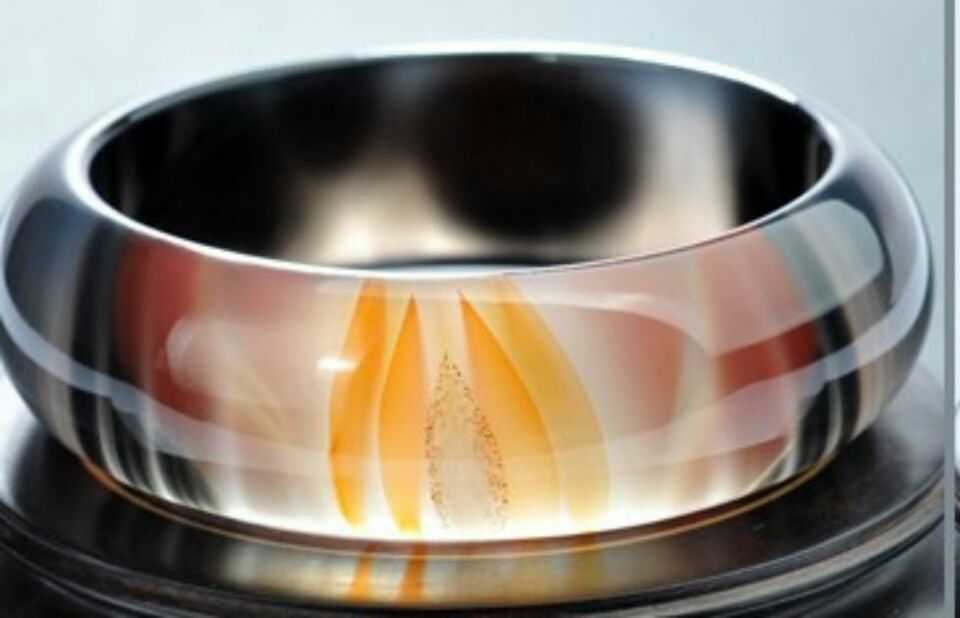 绝世孤品天然巴西玛瑙手镯“金莲圣放”,莲花两侧的光芒和其他位置如墨染一般的黑色构成一幅“出淤泥而不染”的完美图解,莲花清高圣洁!
