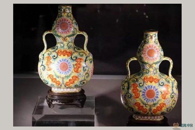 清乾隆年制黄地洋彩’福寿连绵’图绶带葫芦扁瓶:以1.07亿港元成交