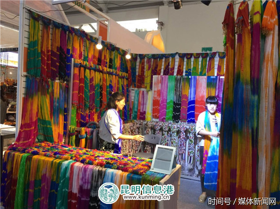 位于南亚馆的印度展区有152个展位,参展展品主要有纺织品、手工艺品、家具和珠宝饰品等,五颜六色的扎染围巾吸引了市民的目光。