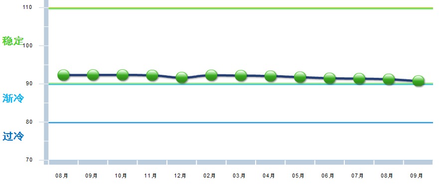 中国轻工业经济运行及预测预警系统数据显示:2018年开年,中轻景气指数延续去年四季度以来的下降态势,连续9个月在蓝色“趋冷”区间波动,9月中轻景气指数为88.12,环比8月下降0.27点,较去年同期下降2.28点。