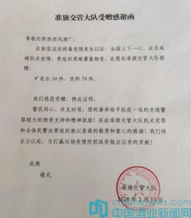 西凤酒作为中国四大名酒之一,迅速部署各项防控工作,义无反顾的投入疫情防控的战争中。并组织全国各地的经销商开展“新时代最可爱的人”慰问活动。在这个特殊时期,西凤酒甘宁分公司协同区域内各地的经销商,持续为奋战在抗击疫情一线的工作人员们送去爱心,与战疫英雄们携手同心坚决打赢防疫攻坚战,举国聚力“战疫”、西凤同心“涅槃”。