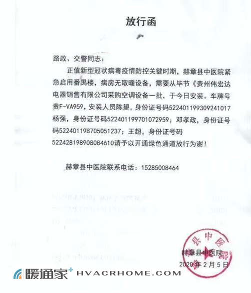 据了解,为保障赫章县中医院的隔离病房及医护人员办公室快速投入使用,格力服务商“毕节伟宏达公司”工作人员不畏惧病毒的危险,坚守岗位,按时完成空调安装。目前赫章县中医院项目已经按期完成,交付使用,为抗疫行动再添安全保障。不一样的岗位,一样的坚守,共同战“疫”,格力人在行动。