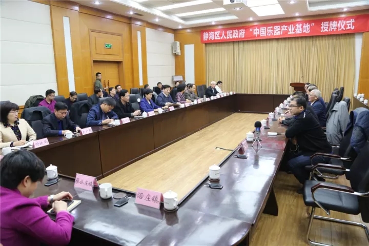 11月21日,天津静海区“中国乐器产业基地”授牌仪式在静海区会议中心举行。中国轻工业联合会党委副书记、中国乐器协会理事长王世成、协会常务副理事长曾泽民、副理事长王松美、秘书长陈晋武等一行6人专程出席了授牌仪式。天津市和静海区出席仪式的领导有:天津市工商联副主席、副会长娄杰、经济部部长张岚;中共静海区委副书记刘伟、区委常委员、统战部长黄淑芳、 副区长张金丽、区政协常务副主席崔悦平和区有关部门主要负责人及部分乡镇领导,还有天津市乐器制造商会会长、副会长以及天津盛兴元乐器有限公司、天津圣迪乐器有限公司、天津奥维斯乐器有限公司等企业代表。